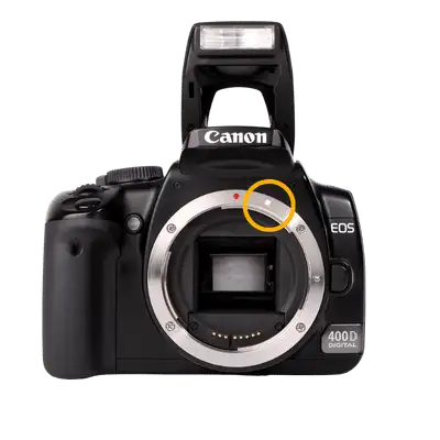 Kode ini biasanya terdapat pada lensa full frame Canon. Semua jenis kamera baik kamera digital Canon maupun kamera film besutan brand ini menggunakan lensa jenis EF ini . Bulatan warna merah pada mounting kamera Canon menandakan kamera tersebut dapat menggunakan lensa jenis EF ini.